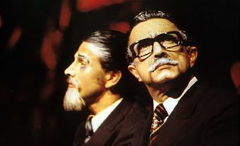 1990 – EPOCA DE ALLENDE | Actores: Rosa Ramírez Ríos, Roxana Campos, Ximena Rivas, María José Núñez, Rodolfo Pulgar, Horacio Videla, Aldo Parodi, Jaime Mc Manus, René Rossel, Hernán Lacalle, Ignacio Miranda, Rodrigo Marquet, Boris Quercia. Músicos: Cuti Aste, Jorge Lobos. Diseñadores: Karen Erhmann, Álvaro Díaz, Daniel Palma, Alejandro Rogazy, Marcos Soto, Elías Sepúlveda. Técnicos: Pancho Sandoval, Fidel Sandoval Azúa, Francisco Sandoval Azúa, Tabo Arenas. Colaboradores: Rosa Díaz, Carolina Rojas, Mario Vargas, David Bravo. Secretario: Leonel Cornejo. Producción: Gran Circo Teatro Dirección General: Andrés Pérez Araya