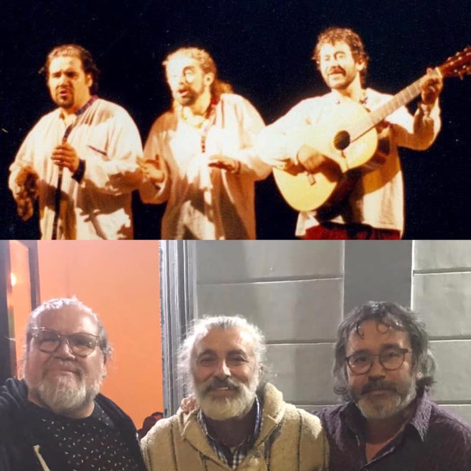 1998 – DE POEMAS CANTOS Y OTRAS YERBAS | Estreno 1998, sala blanca Casa Central Universidad Católica de Chile y giras por Buenos Aires, Santa Fe, Argentina (1998), Lima y Trujillo Perú, Quito Ecuador, Pasto, Cali Colombia (1999). | Dirección Jorge López Vidal Elenco: Jorge Bozo, Juan Guerrero y Sergio Monge Dramaturgismo Teatro La Tirana.