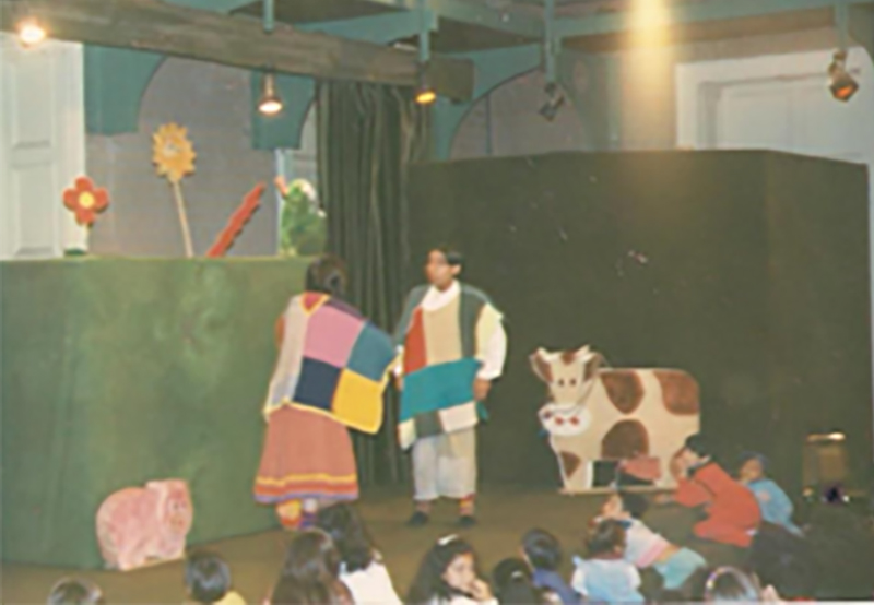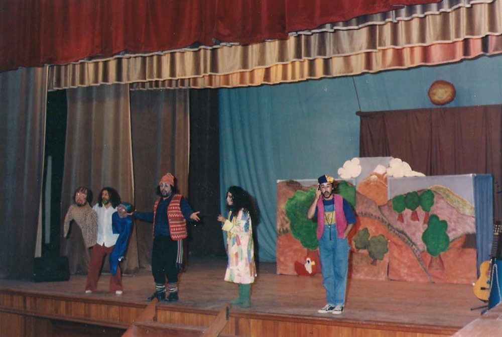 1992 – LOS MUSICOS DEL CAMINO | Espectáculo musical infantil con gigantografías hecho especialmente para 5000 estudiantes de la comuna de la Granja. Estrenado en el ex Parque Brasil. | Jorge López Vidal, director Actúan Jorge Bozo, Olga Valderrama Sandra Pinilla y Daniel Buzeta.
