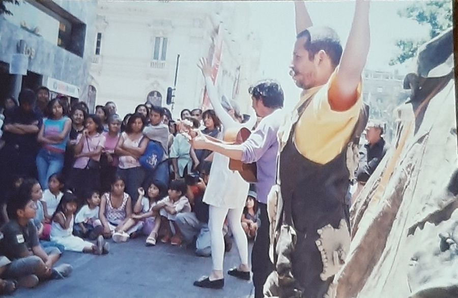 2004-2005 – Taller de teatro con niños inmigrantes | Taller más coordinación de Fiestas del Inmigrante y otros eventos culturales en colaboración con Colectivo sin Fronteras, Independencia | Dirige: Pasmi Participan: Niños, jóvenes y adultos de origen peruano, ecuatoriano y boliviano.