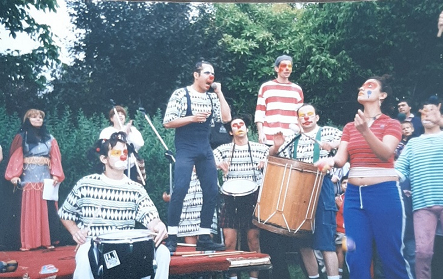 1998-1999 – Taller de murga, malabarismo, acrobacia y zancos | Municipalidad de La Cisterna | Dirige: Pasmi Participa: Niños y jóvenes de varias poblaciones.