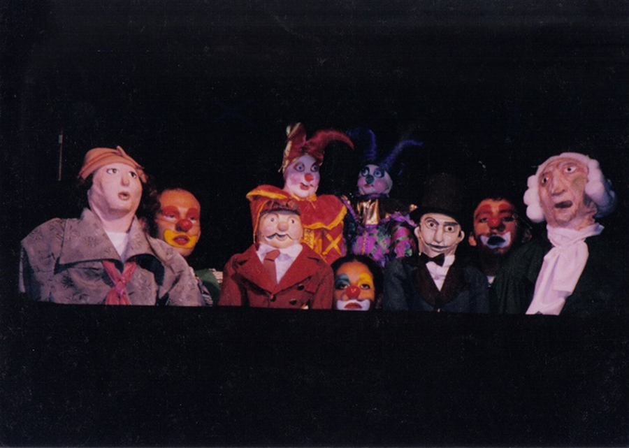 1999 – “TICLOWNS” | Basada en las diversas habilidades físicas de la compañía: acrobacia, malabarismo y animación cómica al ritmo de instrumentos percutivos. | CREACIÓN COLECTIVA Dirige: Iván Iparraguirre Actúan: Iván Iparraguirre, Carol Guerrero, Claudio Cancino, Rodrigo Marchant, Penelope Glass.